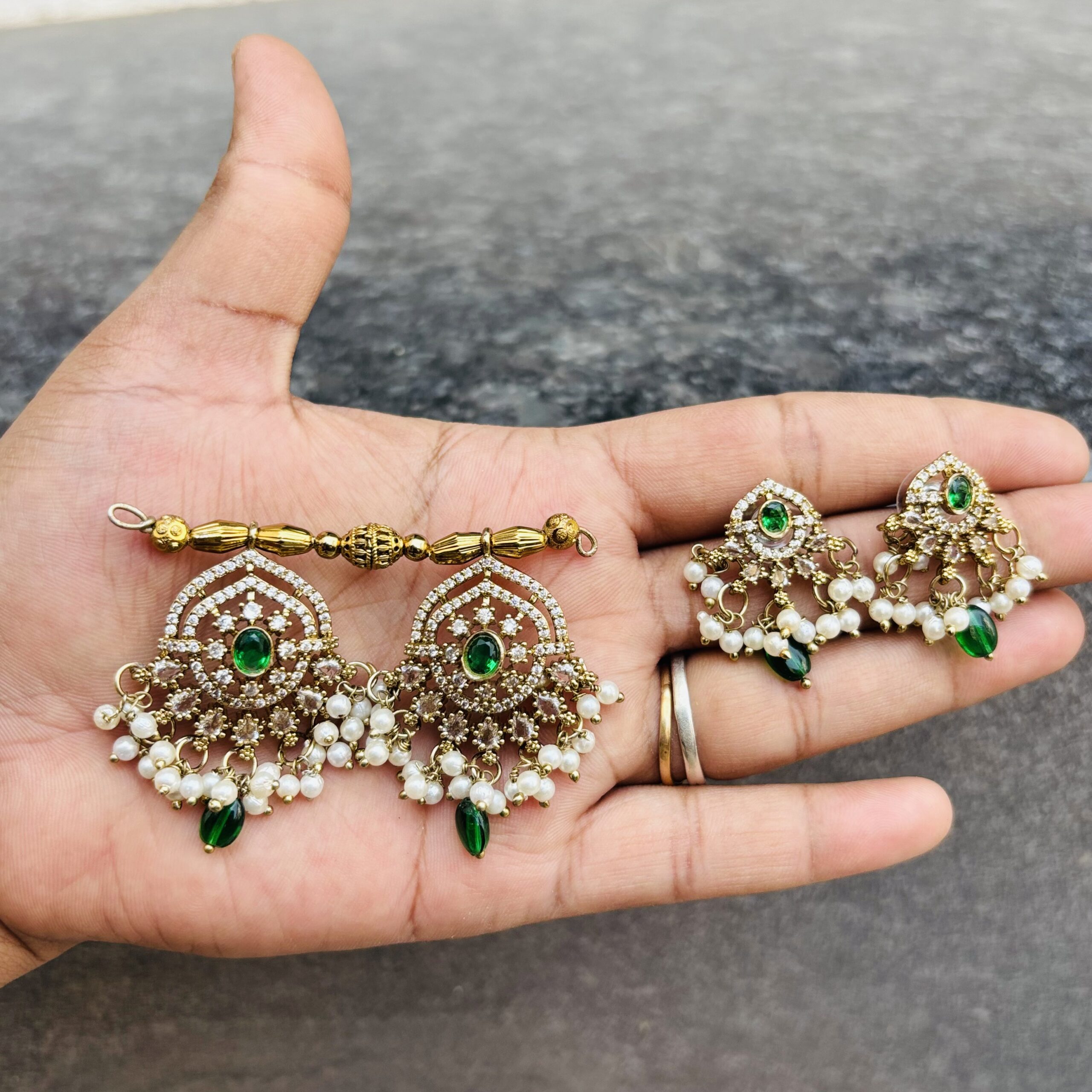 STONE : American Diamond (AD) with Green Centre Stone